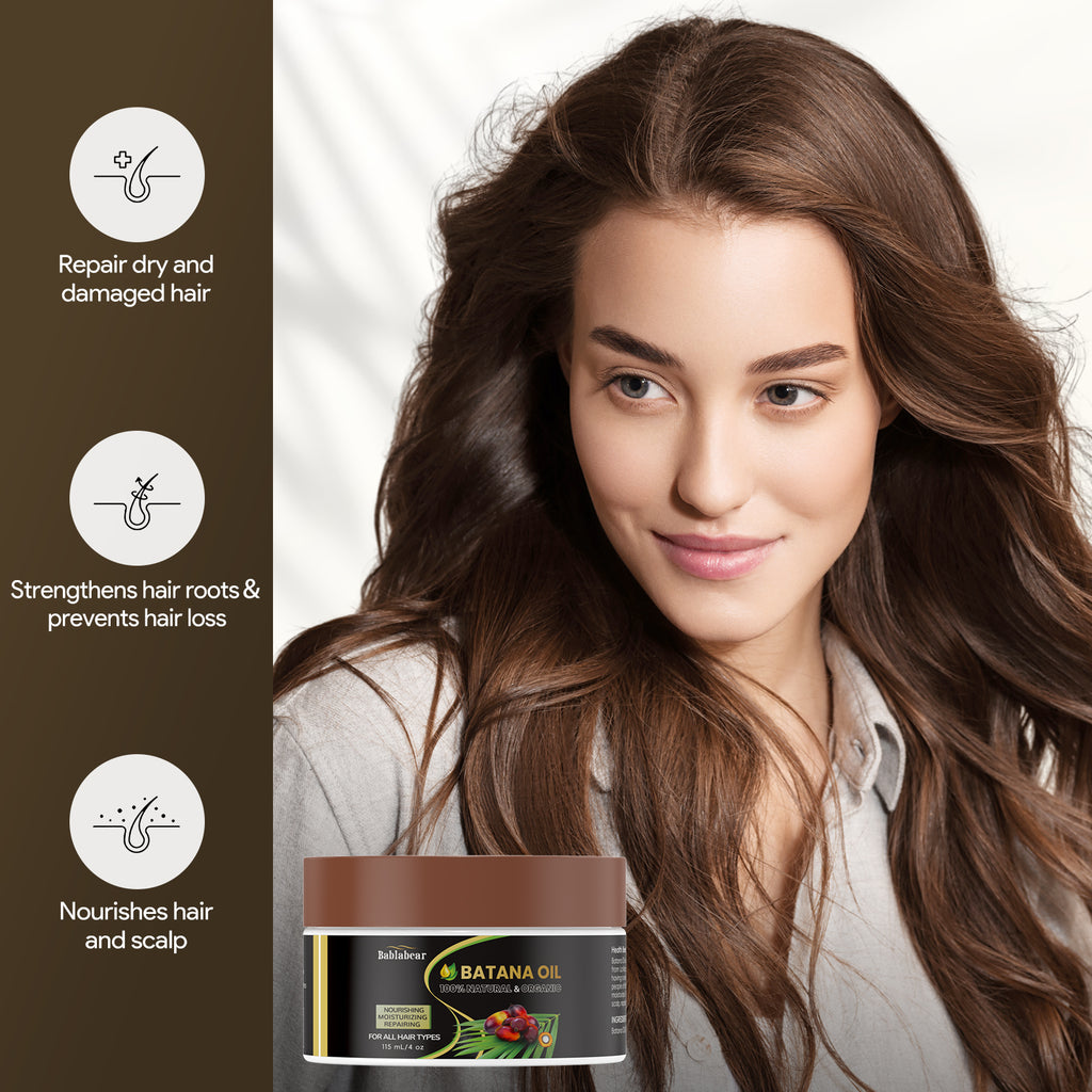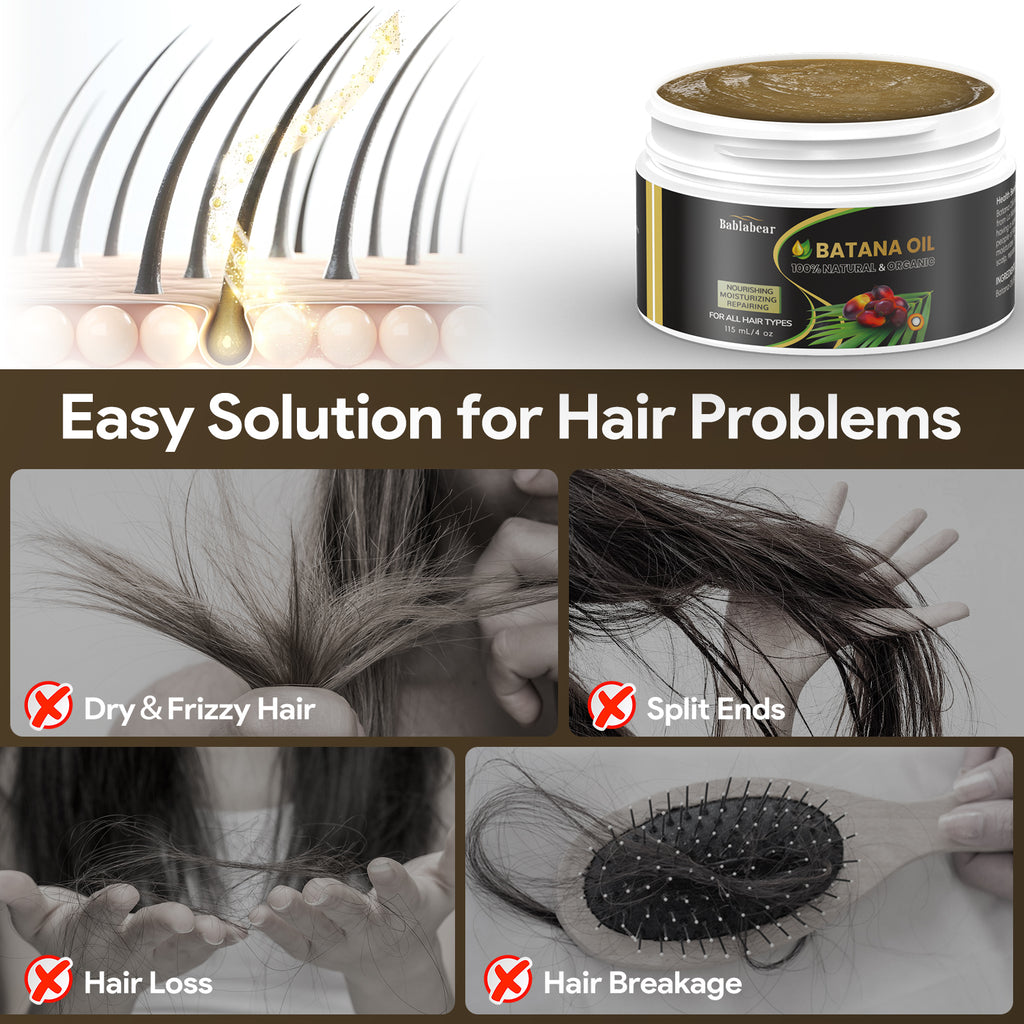 Bablabear Batana Oil for Hair Growth,Natural Organic Hair Oil Repairs Damaged Hair,Enhances Hair Thickness,Eliminates Split Ends,Prevents Loss for Men & Women.
