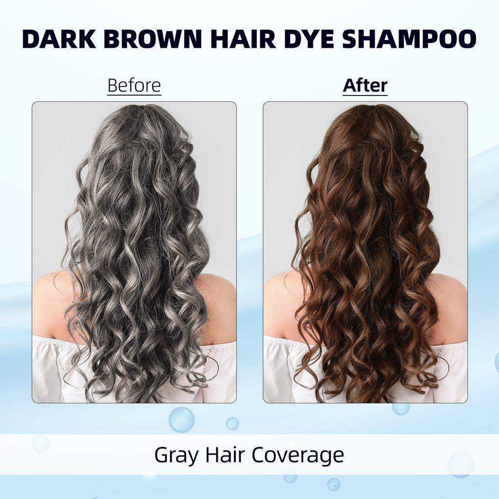 - GRAY HAIR COVERAGE: Can effectively cover gray hair, so that you are no longer affected by gray hair and rejuvenate. Obtain dark brown the fresh-looking hair of your younger days. Dark brown hair can last 3-4 weeks. The hair color shampoo only hang on to the surface of the hair shell, It's safer for your hair as well as your skin. (Warm Note): Take a skin test before first using